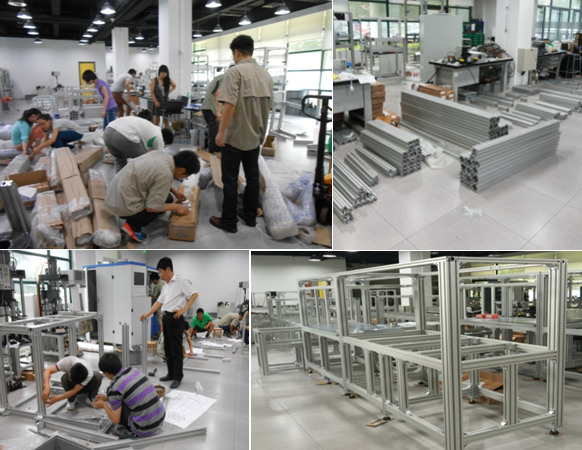 7月高温日期间,公司自检事业部全体员工,在党员的带领下,用实际行动实践党员主题日活动,为了赶加西贝拉装配及分选设备的项目进度,在保证个人工作完成的同时,连续三天共同搭型材,最后完成34台测量以及分选机架的装配工作。每天接近0.45吨的型材到货,需要经过拆包分选、库房登记、分类集中,最后按图纸进行装配等一系列步骤,部门上下近35个员工在郭总的带领下,每三人分成一个小组,分工明确,有条不紊地搭型材装架子。热了,擦擦头上的汗;累了,就地坐下稍事休息,之后再继续热火朝天的干活,因为每个人都不想因为自己的拖沓而耽误整个项目的进程。装配期间,为了给大家降温解渴,李总和石总还亲自为大家买了冰镇饮料,并参与装配工作。经过大家齐心协力,连续3天的奋战,2000多根型材最后组装成34台机架,加西贝拉装配及分选设备项目顺利赶上进度,众志成城,其利断金。