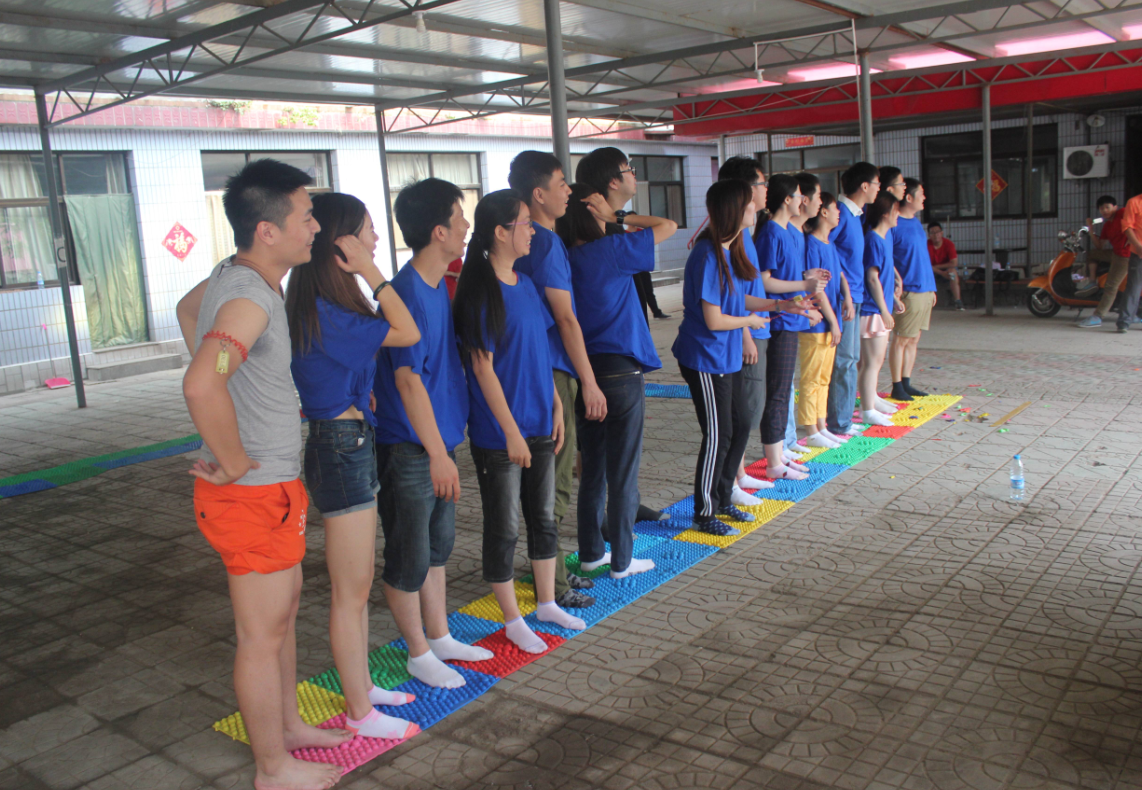 “指压板挑战”是在真人秀节目中大热的活动,这次也出现在了我们的拓展中,每组队员脱了鞋在指压板上完成接力比赛,虽然很痛,却没有队员退缩。