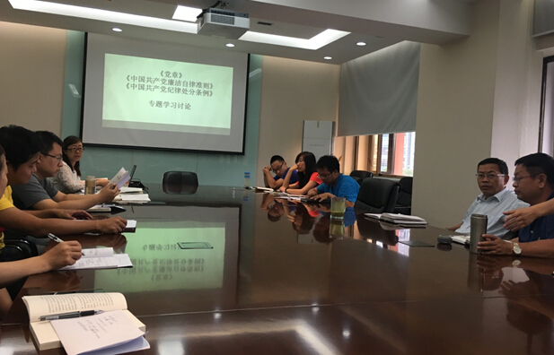 “两学一做”学习教育专题讨论会分为三个部分:第一部分,由支部书记为全体党员进行“两学一做”学习教育的解读;第二部分,支部书记讲党课,带领大家深入学习《党章》、《中国共产党廉洁自律准则》和《中国共产党纪律处分条例》,梳理脉络,并对其中关键内容进行了详细剖析;第三部分,党员交流学习体会。