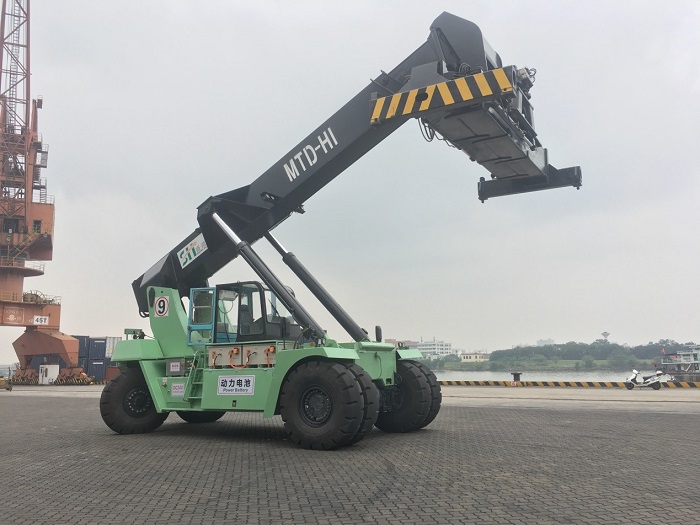 港口流动机械堆高机的纯电动改造是机科重工与北滘港(二期)的第二次合作,此前2017年11月份和2018年3月份,机科重工分别为该港提供了电机直驱纯电动集装箱低速牵引车和纯电动正面吊。
