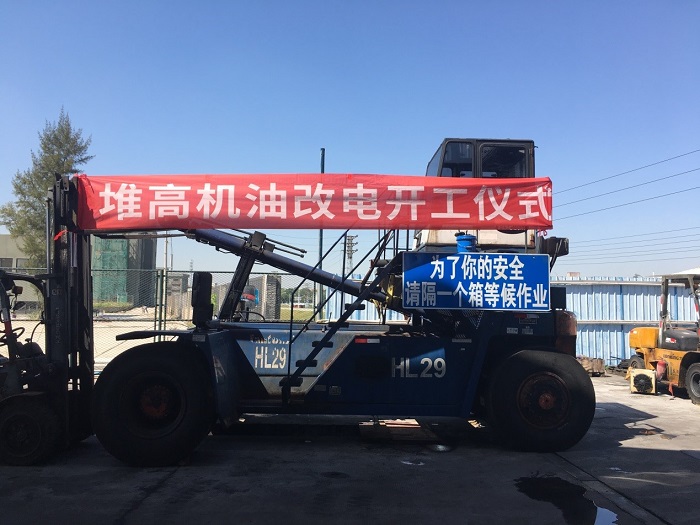 2018年03月改造交付国内首台、世界领先的纯电动正面吊。