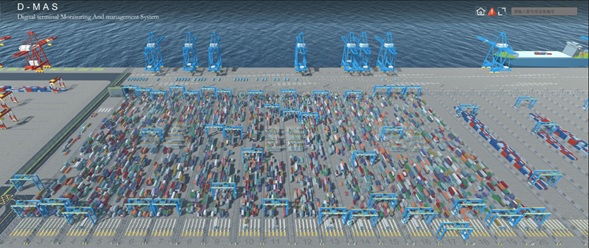 D-MAS作为助力港口码头向智能化管理的助推平台,采用了真三维全新的展示方式,由设备监控子系统、业务监控子系统、业务操作子系统组成。通过D-MAS的三维动画立体展示,可以对港口码头各个层面(设备资源、作业过程等)进行有效管理和监督。