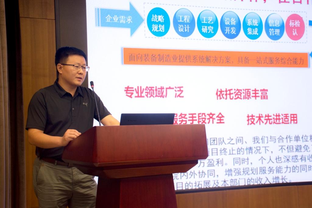 机械科学研究总院优秀博士毕业生代表中机生产力促进中心系统所所长吴进军研究员分享了自己的成长成才经历,号召大家“沉下心,在实践中历练;敞开怀,在合作中成长;抬起头,在挑战中提升;放开眼,在创新中前行”。