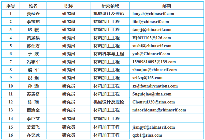 师资沈阳铸造研究所有职工474人,其中研究员、高级工程师134人,博士研究生9人,硕士研究生78人,有多名铸造领域的学术带头人。国家百千万人才工程“有突出贡献中青年科技专家” 1位、享受政府特殊津贴专家7位、“百千万人才工程”国家级人选5位、辽宁省创新领军人才1位、辽宁省“百千万人才工程”人选1位、机械总院杰出科技专家5位、机械总院杰出复合型人才3位、机械总院杰出高技能人才3位。
