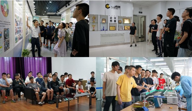 滕绍东作为集团展厅主讲人,向同学们介绍了集团历史沿革、全国布局、科技创新成就、产业、行业特色等。北自所安排了展厅、专用电路厚膜混合集成电路生产车间、离子束表面改性实验室、智能物流系统验证平台等参观。学生们对装备、零件、实验室等实物表现出浓厚的兴趣,共同参与话题讨论。