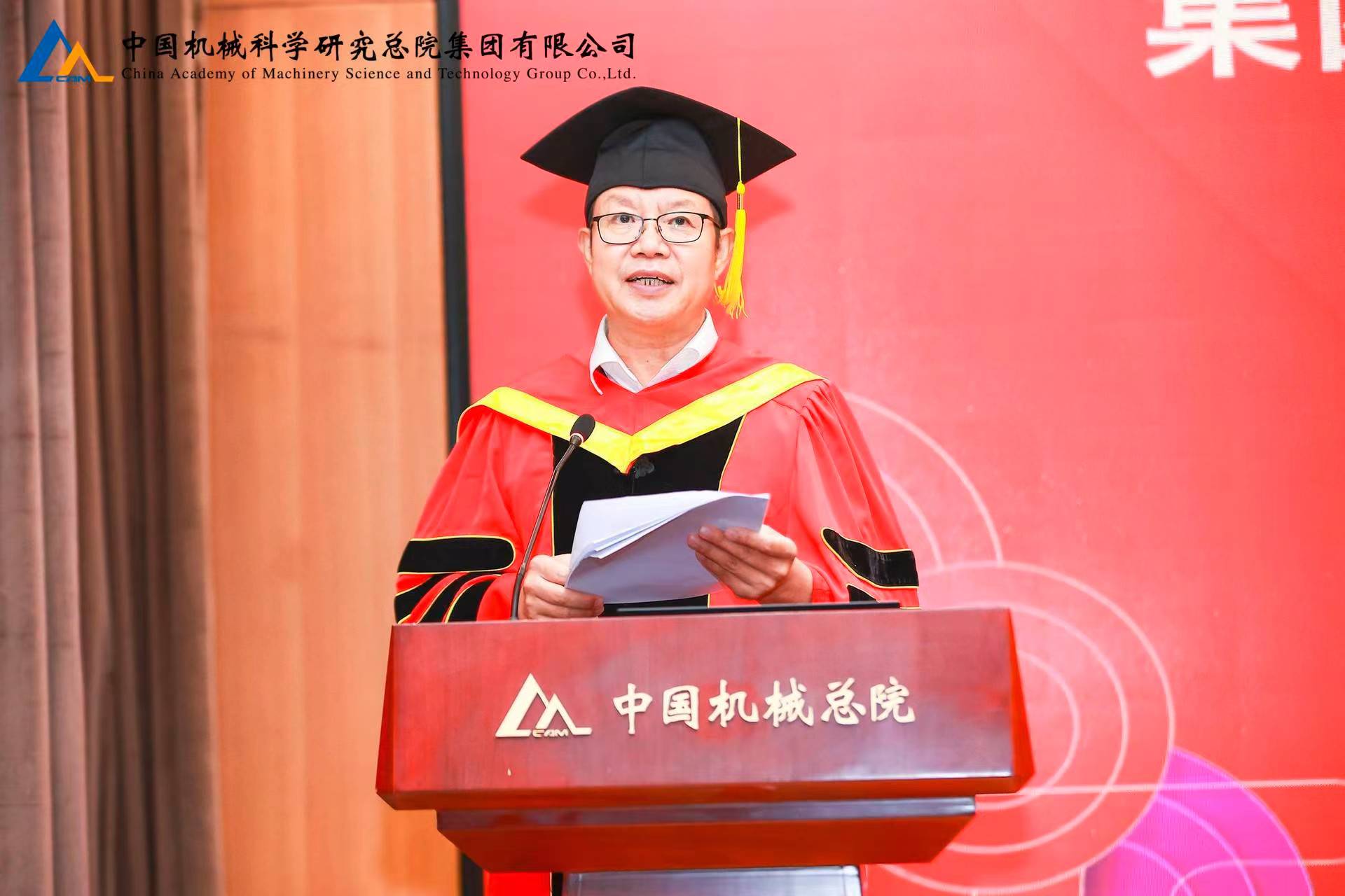 7月12日,机械科学研究总院(以下简称“机械总院”)组织召开2023年研究生毕业典礼暨学位授予仪式。机械总院学位评定委员会主席、集团党委书记、董事长王德成出席会议并讲话,集团副总经理、首席科学家、博士生导师娄延春、集团副总经理、怀柔科技创新基地管理委员会主任王宇、集团副总经理、博士生导师孟祥宇、院学位评定委员会秘书长、集团人力资源与干部部部长裴方芳出席。会议采用线上线下结合的方式,在京二级单位领导、导师代表、毕业生及家属共计100余人分别在主会场和视频分会场参加会议。会议由机械总院学位评定委员会副主席、集团总工程师杜兵主持。