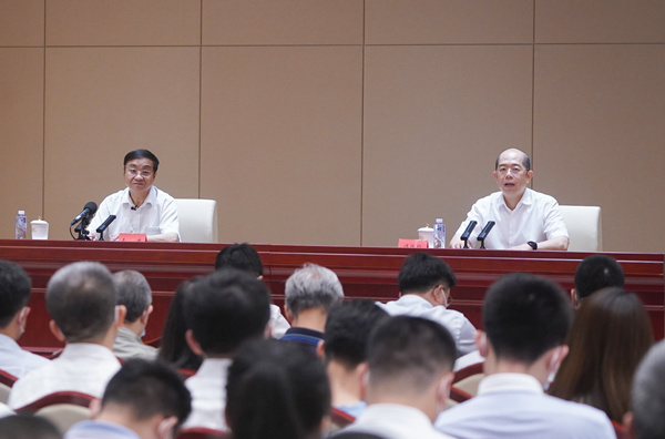 7月17日上午,由中央宣传部、中央党史和文献研究院等共同举办、国务院国资委承办的学习贯彻习近平总书记“七一”重要讲话精神系列专题宣讲报告会(第七场)在中国共产党历史展览馆举行。求是杂志社原社长李捷作报告,国资委党委委员、副主任谭作钧主持报告会。