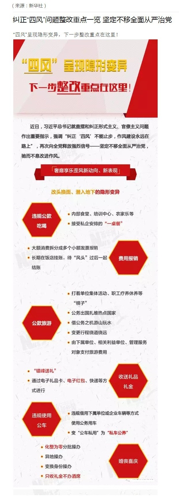 纠正“四风”问题整改重点一览 坚定不移全面从严治党