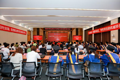 王德成董事长发表讲话。他指出,在庆祝中国共产党成立100周年华诞之际,集团隆重举办2021年研究生毕业典礼暨学位授予仪式,将一批优秀的青年送到更广阔的舞台,陆续走上新的工作或学习岗位,可谓意义重大。习近平总书记在建党一百周年的讲话中指出:未来属于青年,希望寄予青年。王德成董事长强调,作为机械总院的新时代青年,要初心如磐,秉承家国情怀;追求卓越,坚持科技创新;行稳致远,秉持笃学实干。希望广大研究生及青年同志为机械总院集团的高质量发展添砖加瓦,绽放流光溢彩!