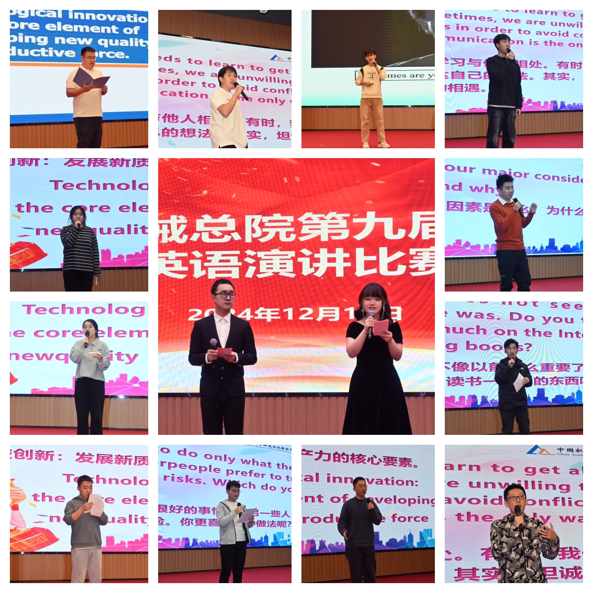 为加强集团研究生学术交流,提升国际视野与综合素养,12月13日,研究生院举办中国机械总院第九届研究生英语演讲比赛,来自哈焊所、沈铸所、北自所、机电所、基础院、轻量化院的37名研究生汇聚一堂,以英语为桥梁,传递智慧与激情,带来了一场别开生面的学术盛宴。本次比赛邀请到北京语言大学、军事科学院、集团院务部专业英语老师等做现场指导。