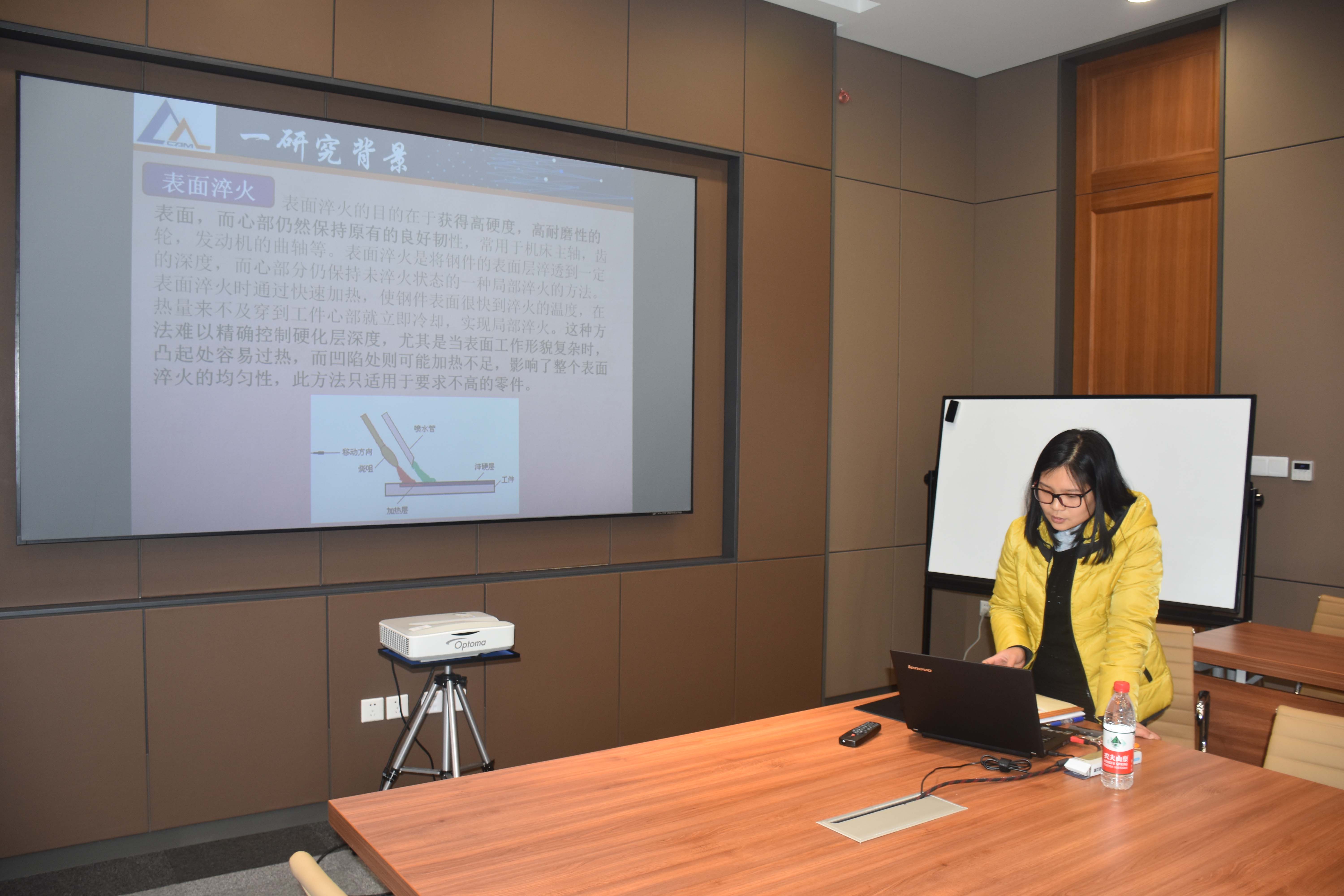 安伟骋向大家做了题为《高精度齿条棒料连续感应热处理的数值模拟研究》的报告。安伟骋同学通过实际工程项目中的案例,向大家阐述了在面对客户要求时,如何通过构建模型进行模拟分析,进而完成技术改进,满足客户要求。