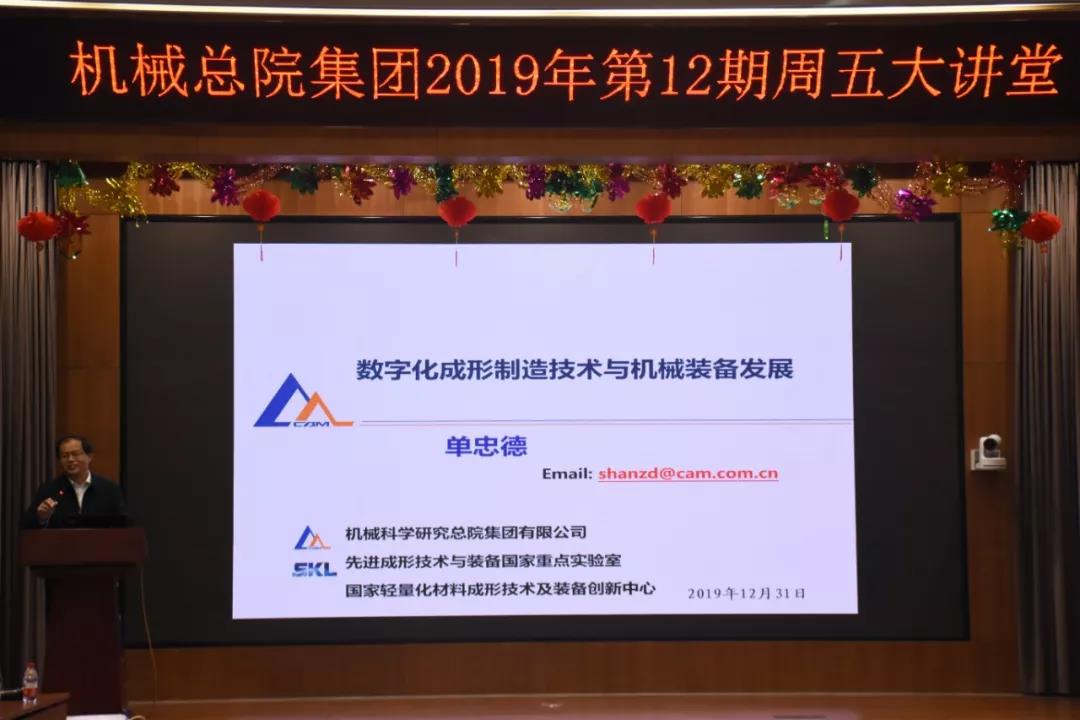 12月31号下午,2019年第12期(总第32期)周五大讲堂在五楼报告厅举办,本次讲座邀请到了中国工程院院士、机械总院集团党委委员、副总经理单忠德院士、博士生导师,做题为“数字化成形制造技术与机械装备发展”的主题讲座。