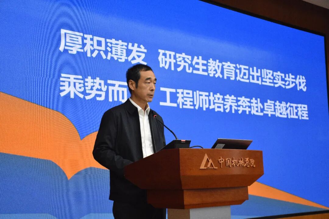 李玉鑫作题为《厚积薄发,研究生教育迈出坚实步伐;乘势而上,工程师培养奔赴卓越征程》主题讲话。他指出,集团研究生教育47年来成绩硕果累累,为集团科技发展、人才梯队建设做出了重要贡献,特别是研究生院成立后,引领集团各培养单位上下一心,在研究生教育工作上干出了20项“首次”,取得了跨越式发展。站在“十四五”收官和“十五五”开局的重大历史转折点,集团的研究生教育工作要进一步统一思想,凝聚共识,明确方向,奋力前行。第一,研究生院必须切实肩负起“总牵头、总负责、总把关”的重任,全面提升集团研究生教育的“抓总”能力,重点在抓职能梳理、抓体系建立、抓规划布局、抓资源协同四个方面狠下功夫;第二,要坚定研究生培养方向,努力建设教育、科技、人才“三位一体”实践高地,通过加强教育、科技、人才责任部门的有效协调,促进“教育链-人才链-创新链”有机衔接,探索“宏观-中观-微观”有力举措,形成育人合力。研究生院要扛起责任,各单位鼎力协同,共同推动集团研究生教育事业迈上新台阶,为服务国家战略和集团发展做出新的更大贡献。