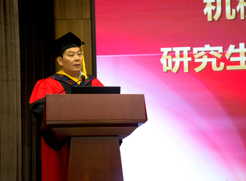 郑州机械研究所龙伟民研究员代表研究生导师做了精彩发言,他向顺利完成学业并取得学位的全体毕业生表示祝贺,并希望毕业生们能讲求“合作、创新、奋进、奉献”,打造创新源头,牢记师生情谊,携手前行共建创新总院。