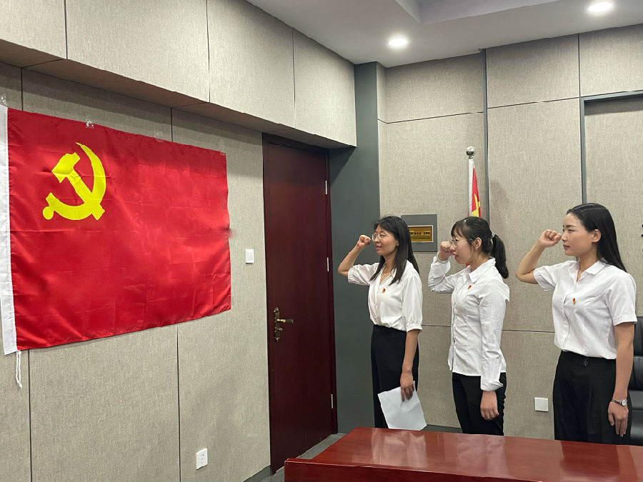 研究生支部成立大会在庄严的国歌中拉开了序幕,根据党章规定,大会以无记名投票的方式选举李倩同志为党支部书记。随后全体党员重温入党誓词,李倩同志代表党支部做表态发言,她代表全体研究生感谢集团对研究生思想政治教育工作的重视,研究生党支部一定发挥好桥梁纽带和传声筒作用,将集团党委的部署带到全体研究生,引导同学们坚定信念跟党走,争做时代新青年。