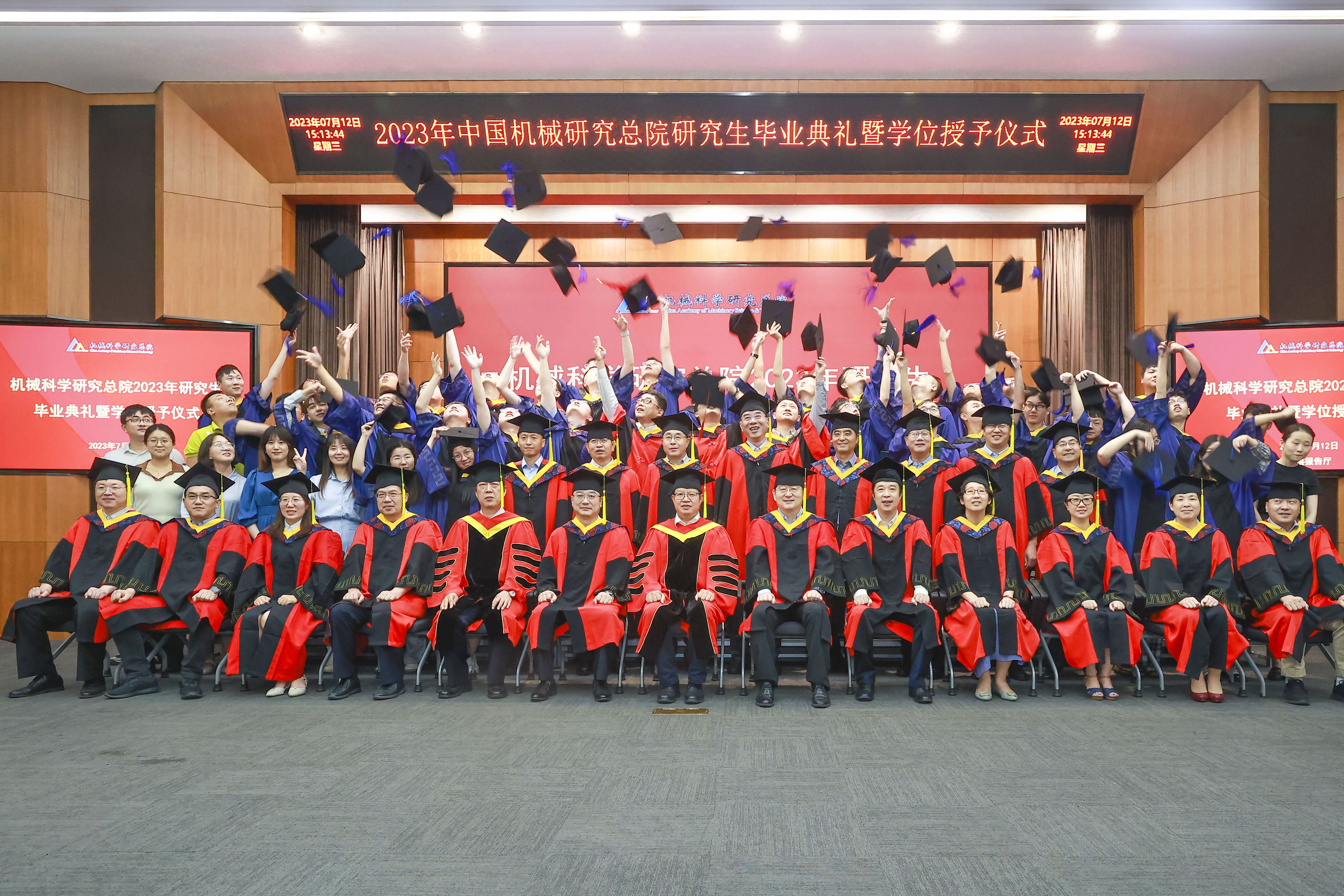 7月12日,机械科学研究总院(以下简称“机械总院”)组织召开2023年研究生毕业典礼暨学位授予仪式。机械总院学位评定委员会主席、集团党委书记、董事长王德成出席会议并讲话,集团副总经理、首席科学家、博士生导师娄延春、集团副总经理、怀柔科技创新基地管理委员会主任王宇、集团副总经理、博士生导师孟祥宇、院学位评定委员会秘书长、集团人力资源与干部部部长裴方芳出席。会议采用线上线下结合的方式,在京二级单位领导、导师代表、毕业生及家属共计100余人分别在主会场和视频分会场参加会议。会议由机械总院学位评定委员会副主席、集团总工程师杜兵主持。