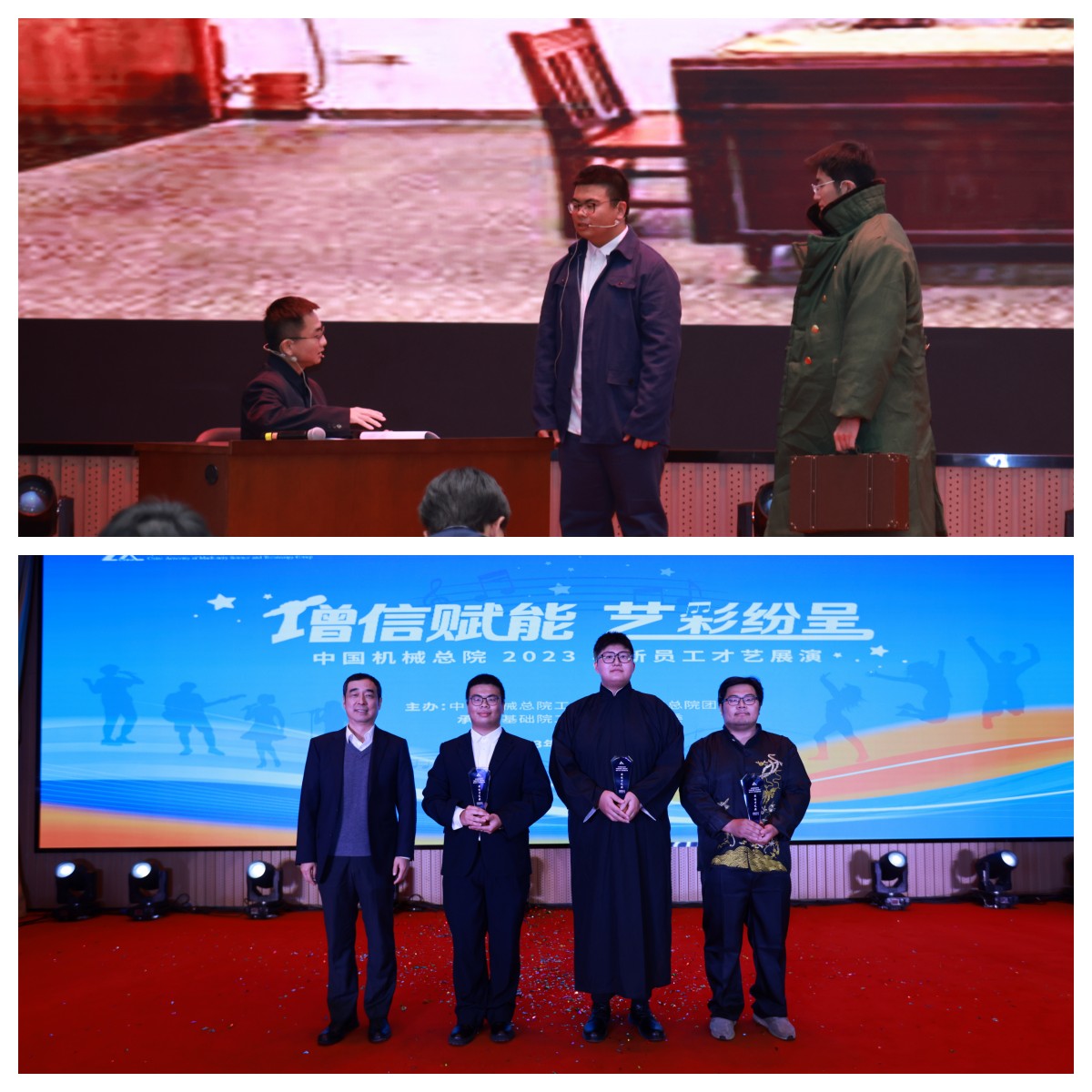 来自机电所章科举、机科股份王辛泉团队自编、自导、自演的话剧《选择》,以“祖国的选择就是我的选择”为主题,通过生动的情节和感人的表演,展现了中国机械总院老一代科学家心怀“国之大者”,赤胆忠诚报效祖国,在科研道路上攻坚克难的感人故事,引发了全场共鸣,赢得观众一致好评,再一次将节目推向高潮,同时《选择》荣获曲艺组最佳才艺奖。