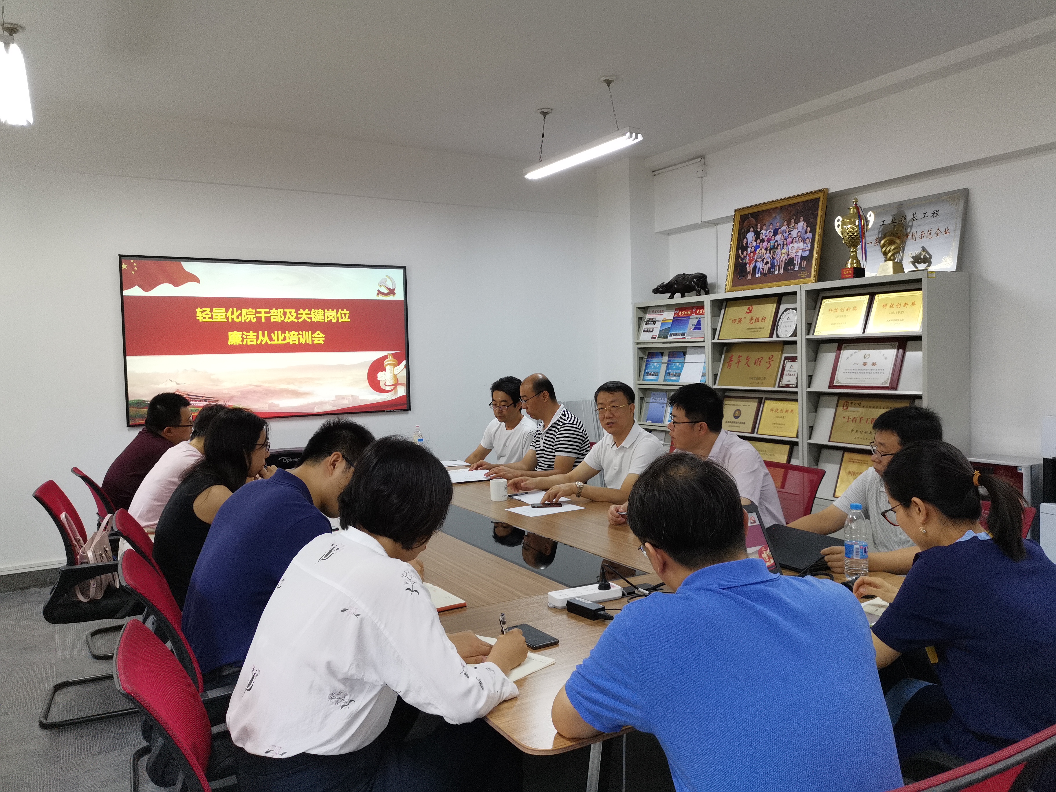 为落实机械总院集团纪委加强廉洁从业教育、北京机科国创轻量化科学研究院有限公司(以下简称“轻量化院”)民主生活会加强干部教育的要求,进一步做好“不忘初心、牢记使命”主题教育整改落实,切实提高中层干部和关键岗位人员廉洁从业意识,9月2日,轻量化院纪委以“廉洁从业从我做起”为主题,组织干部和关键岗位人员共计26人召开廉洁从业培训会。会议由党委书记、代理纪委书记乔培新主持,党委委员、副总经理刘丰,纪委委员、职工监事王绍宗出席会议。