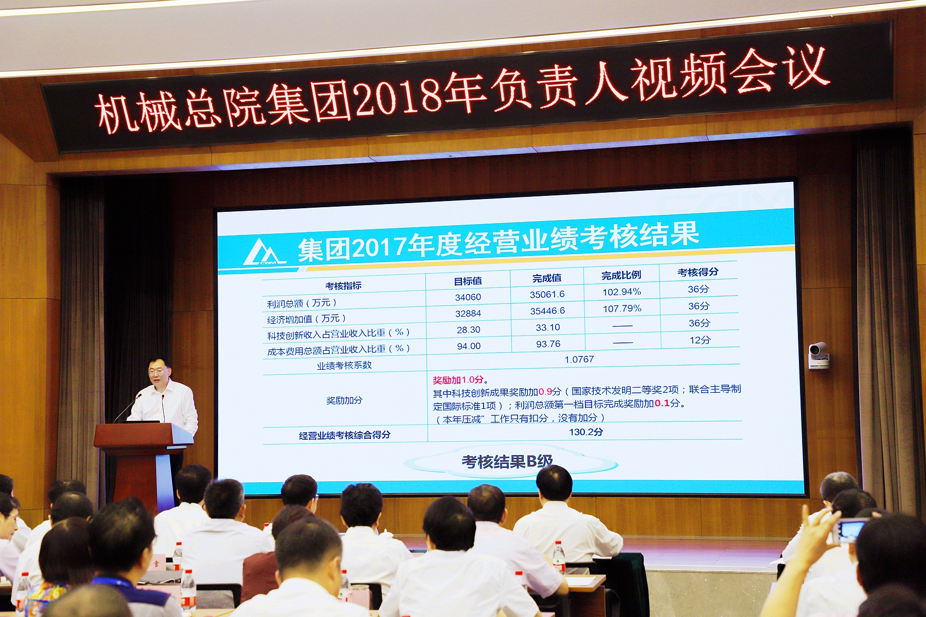 7月24日,机械总院集团召开2018年负责人暨党建工作视频会议,深入学习习近平新时代中国特色社会主义思想和党的十九大精神,贯彻落实中央企业地方国资委负责人视频会议精神,总结上半年重点工作,分析形势、交流经验,部署落实下半年重点任务,深入推动“十三五”战略实施。集团董事长、党委书记、总经理王德成做了题为《提高政治站位 强化责任担当 狠抓工作落实 全面推动机械总院集团高质量发展》的重要讲话。