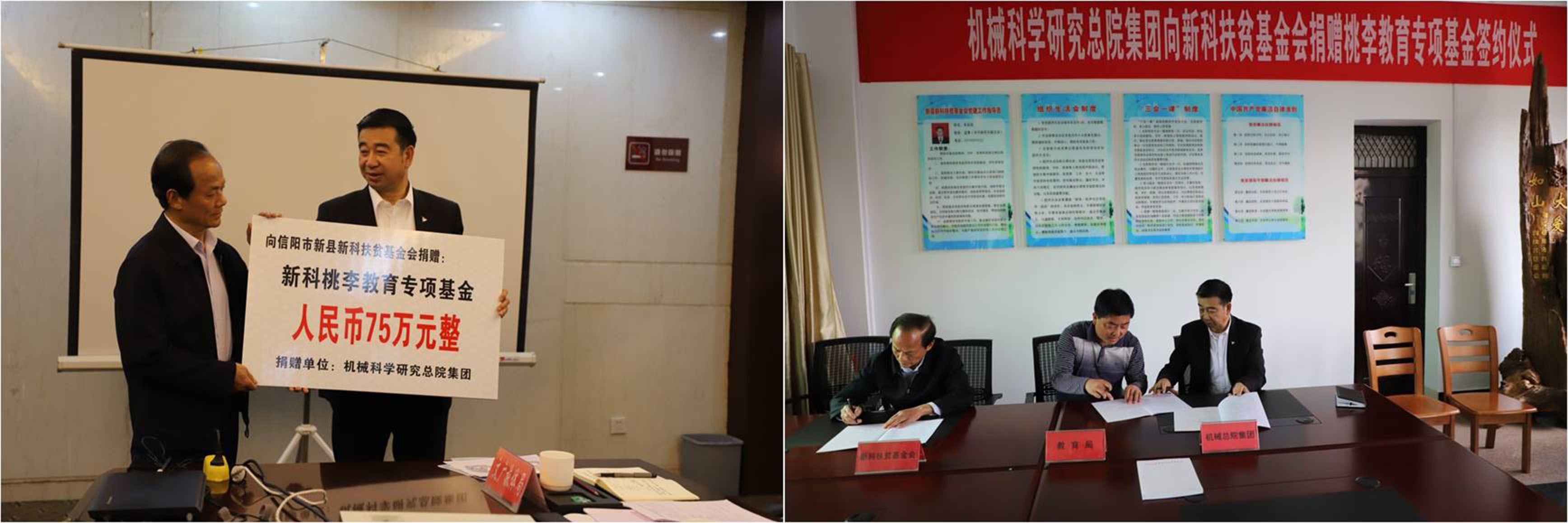 座谈会后,机械总院集团向新科扶贫基金会捐赠75万元“新科桃李奖学金”。
